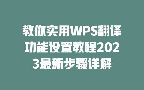 教你实用WPS翻译功能设置教程2023最新步骤详解